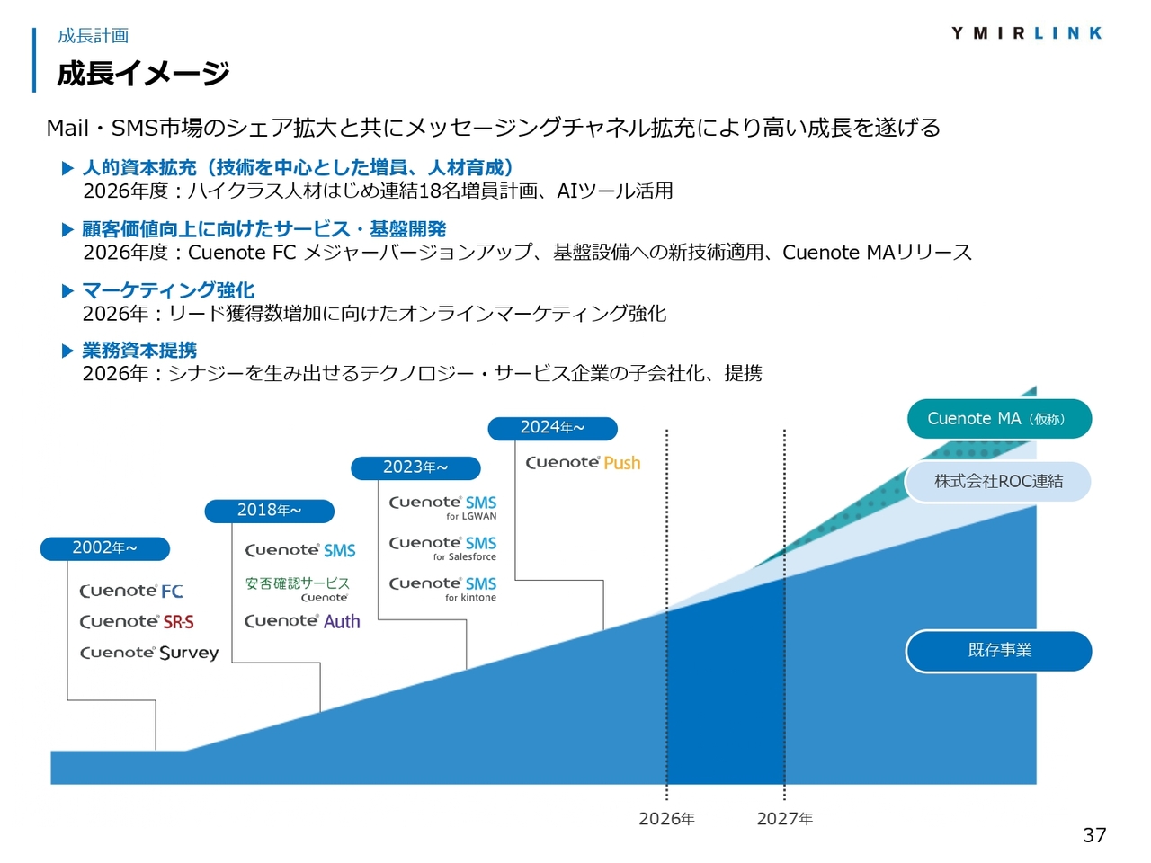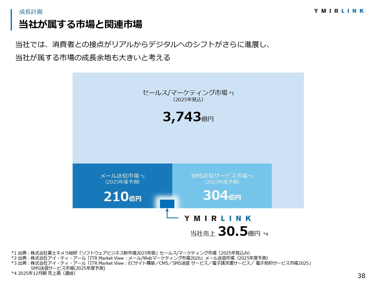 成長イメージです。当社は収益軸としてMailサービスとSMSサービス市場の2つにおけるシェア拡大を図ります。