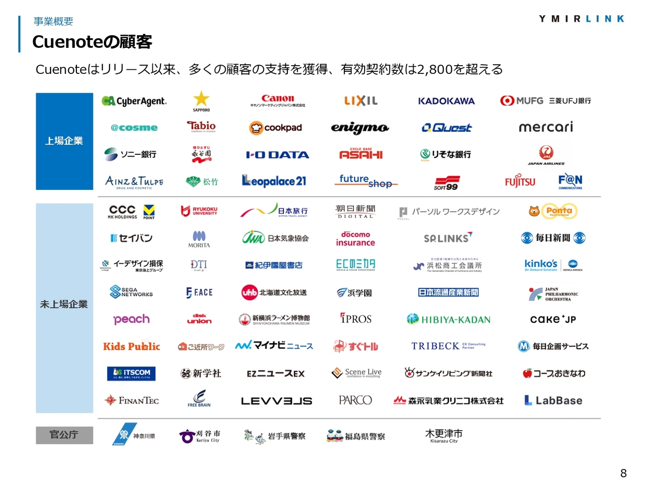 当社のサービスをご利用いただいているお客さまの一例をご紹介します。2025年12月末現在の契約数は2,800契約を超えています。