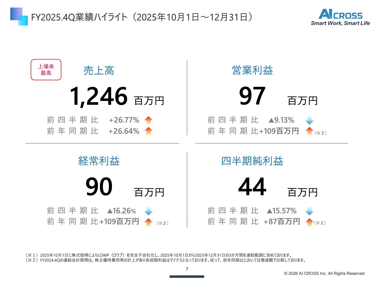 FY2025.4Q業績ハイライト(2025年10月1日~12月31日)