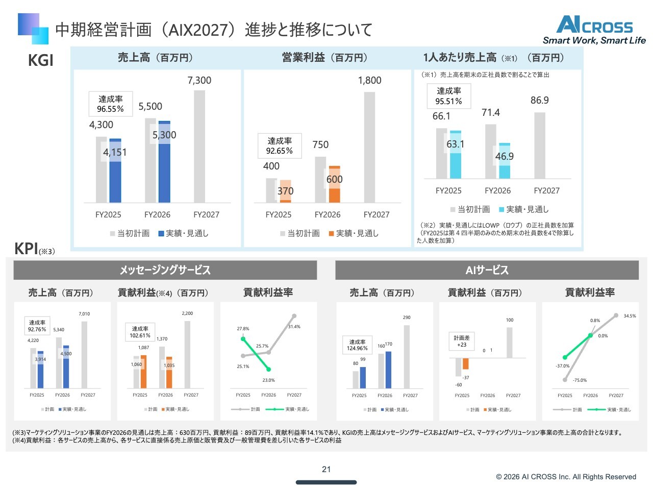 中期経営計画(AIX2027)進捗と推移について