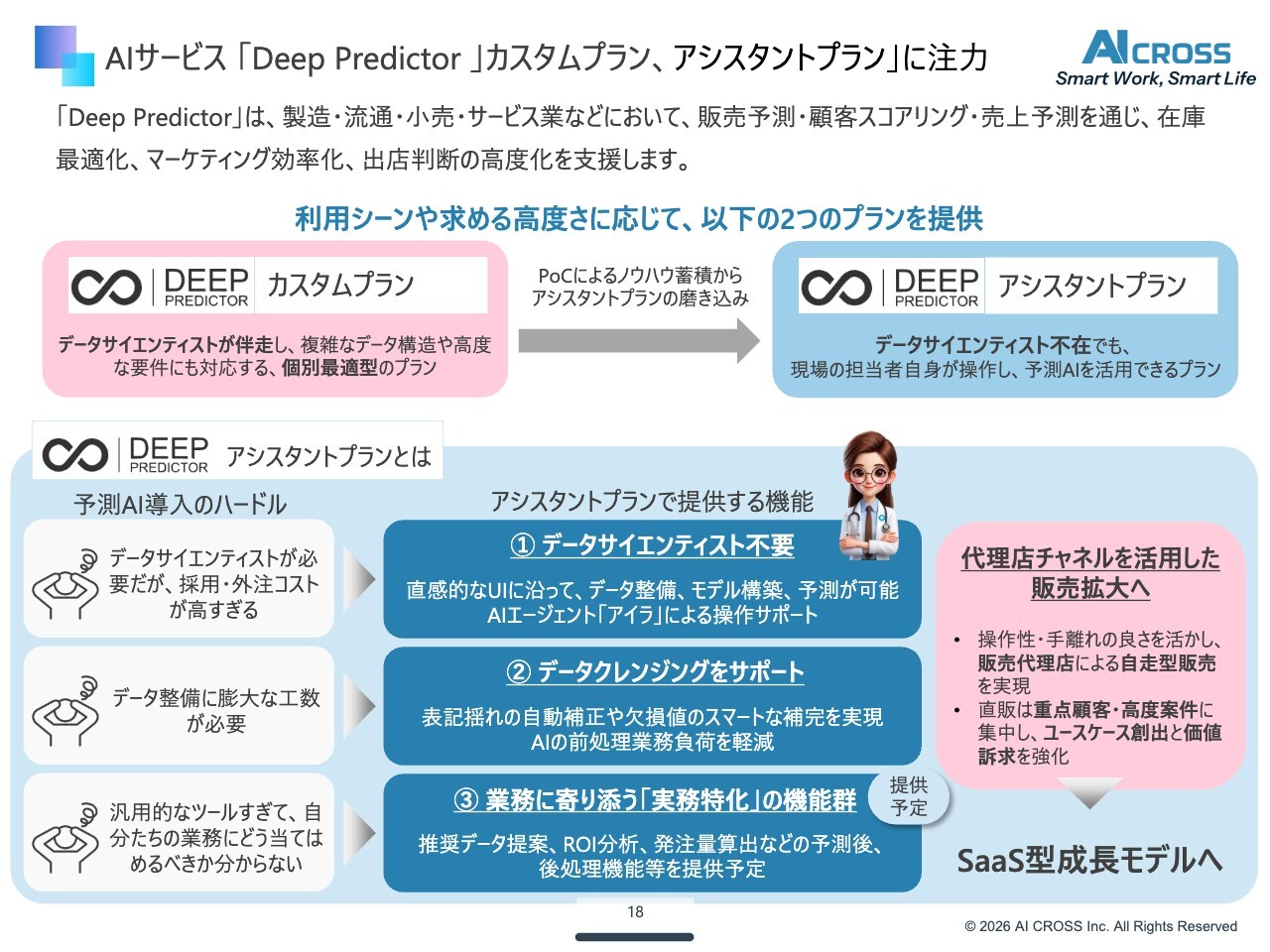 「Deep Predictor」の需要予測などを提供するプランとして、今年は重点を置くのは主にカスタマイズプランとアシスタントプランです。