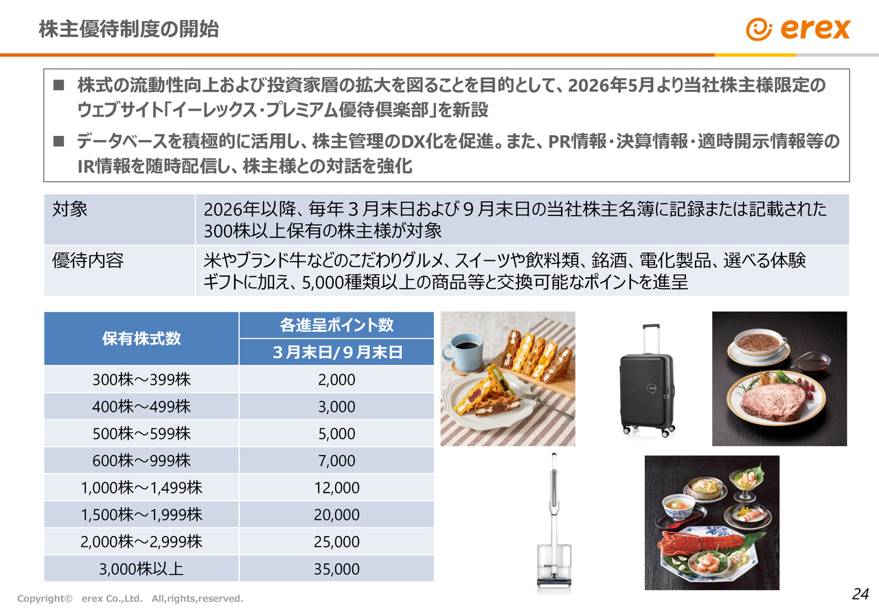 田中:最後に株主優待制度についてご説明します。2月に「イーレックス・プレミアム優待倶楽部」という制度を導入しました。ぜひ株を購入してポイントを獲得していただければと思います。