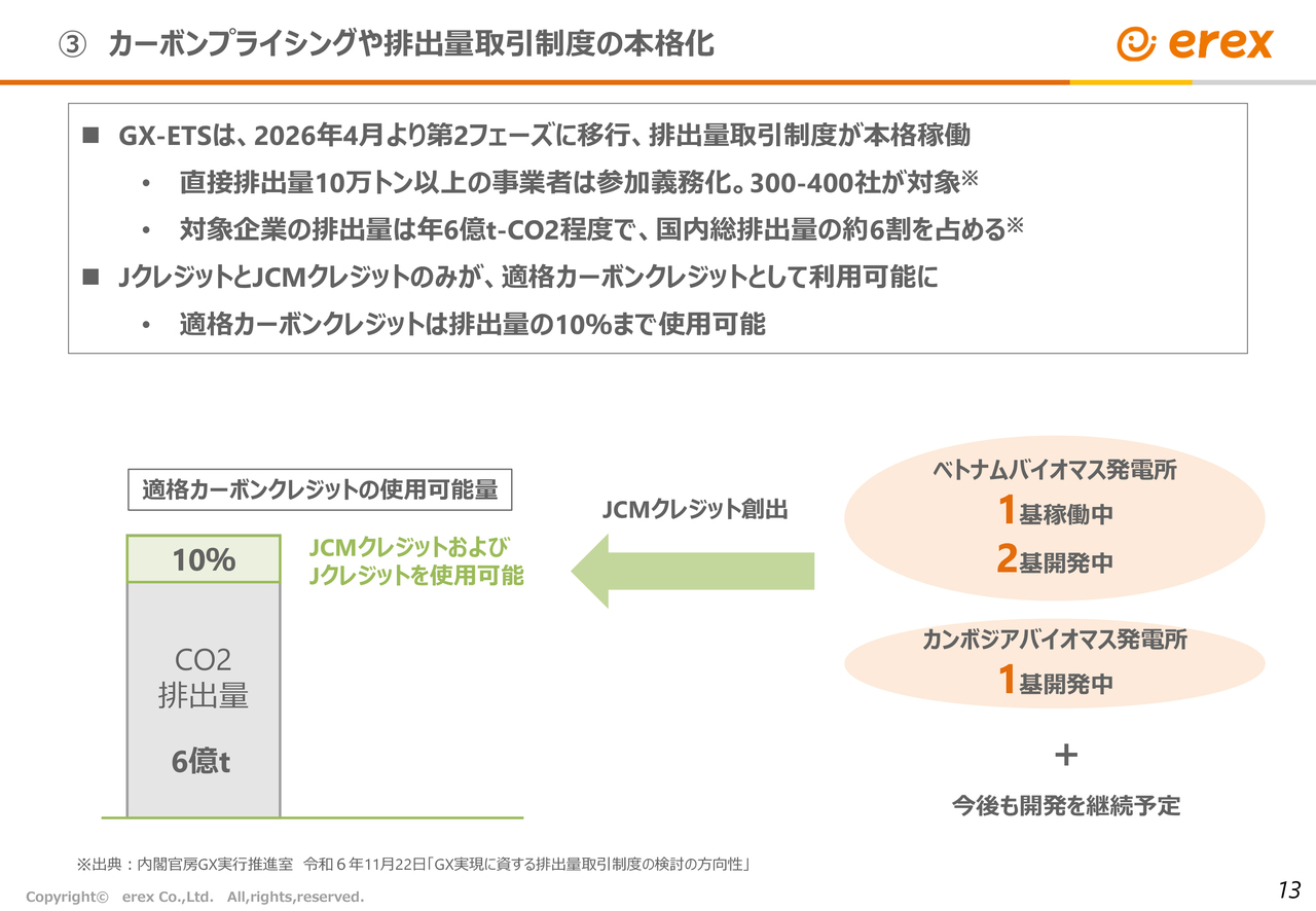 当社は、先ほどご説明したベトナムやカンボジアでのバイオマス発電を通じ、JCMクレジットを獲得する予定です。このクレジットを国内企業向けに販売していきたいと考えています。