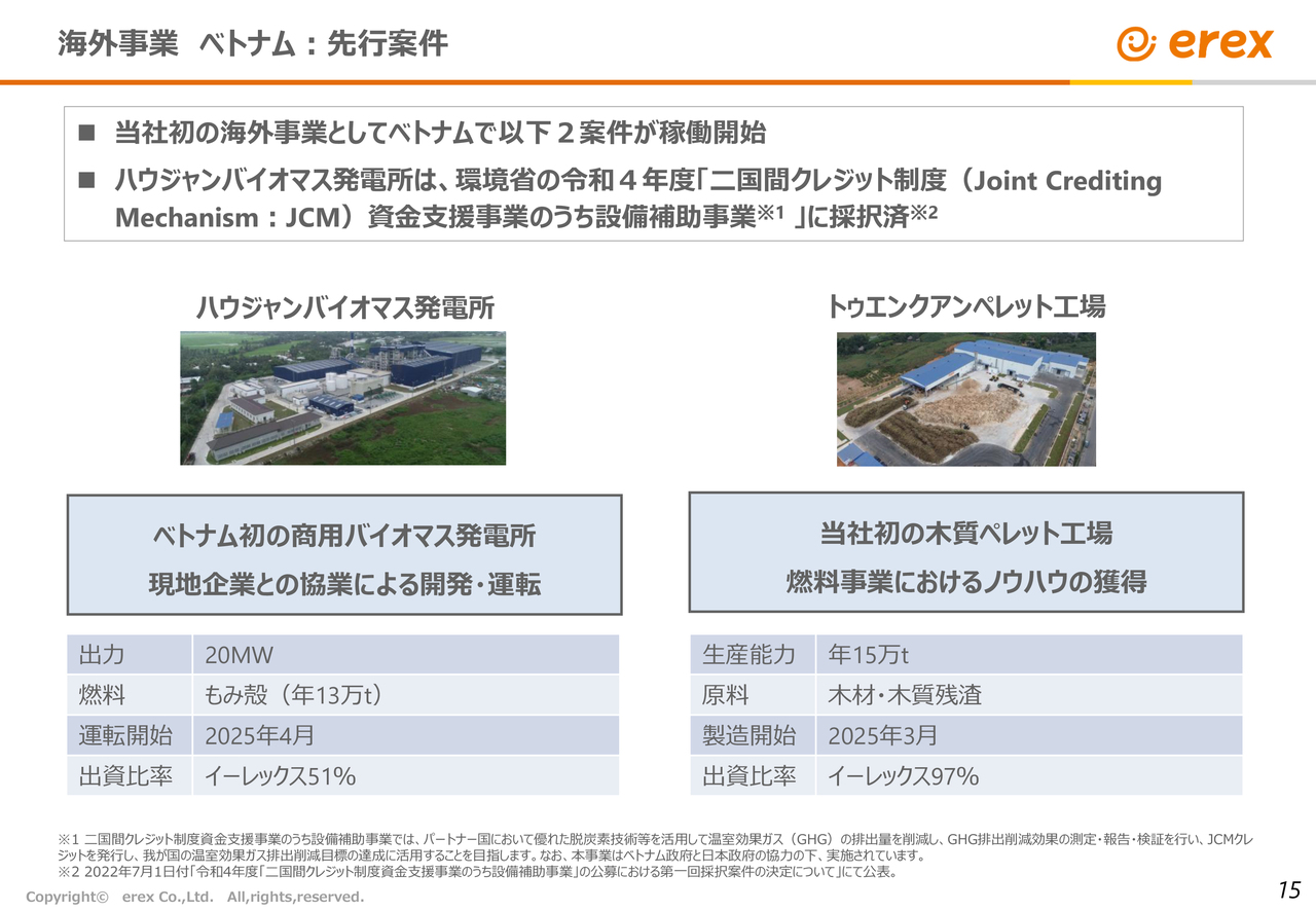 トゥエンクアンペレット工場については、現在、稼働自体は比較的順調に推移しています。来期に向けて燃料調達を着実に行い、営業黒字化を目指すことが重要だと考えています。
