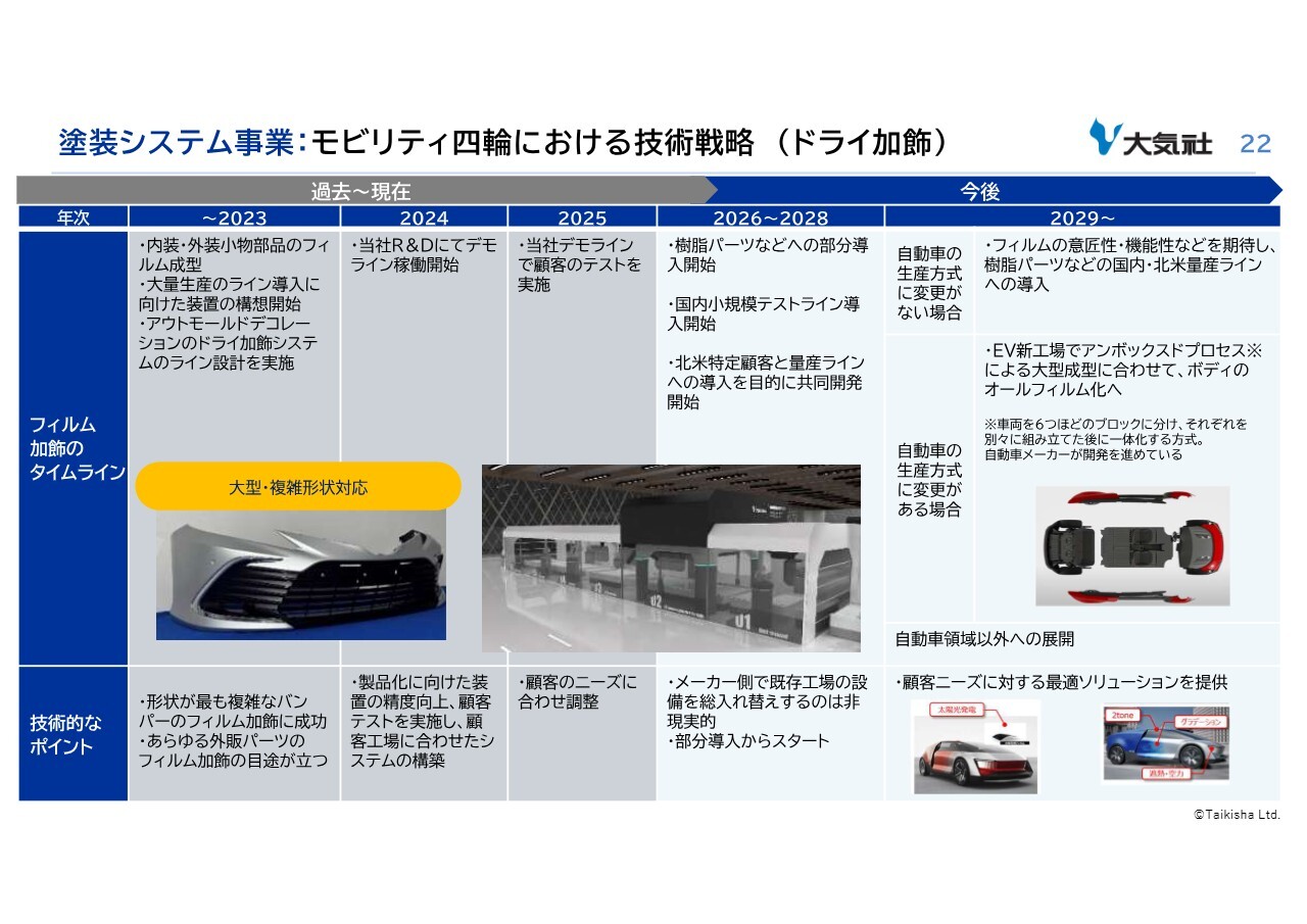 塗装システム事業:モビリティ四輪における技術戦略(ドライ加飾)