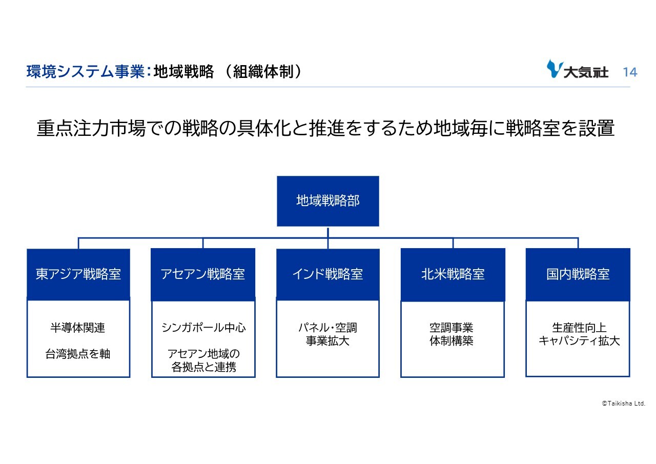 質問者:環境システム事業において、来年度から地域ごとに戦略室を設けるとのことですが、おそらく5つの地域すべてにリソースを投入し、拡大を目指していくと認識しています。