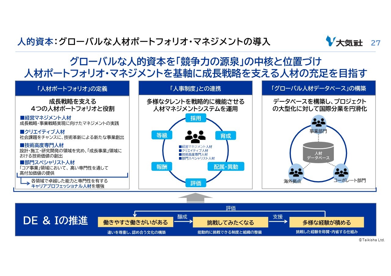 また、グローバルコスト管理や設計・施工業務にAIを活用することで、従来のコストが削減され、高収益体制を構築することができます。加えて、エンジニアリング分野ではAI、ロボティクスの積極的な活用により、自律化の仕組みを導入・拡大し、新規ビジネスの創出にも挑戦します。これらの取り組みを通じて、当社は持続的な成長と競争力の強化を実現し、変化の激しい市場環境においても確固たる存在感を発揮していきます。