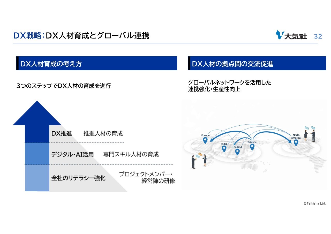また、先ほどご説明したDX戦略を実行面で支えるDX人材についてご説明します。DX人材は3つのステップで育成を進めています。