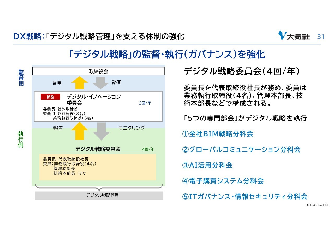 これらの戦略の事業推進・モニタリング体制の強化として、「10年プラン」でも触れたデジタルイノベーション委員会の新設、デジタル戦略委員会の機能強化についてご説明します。