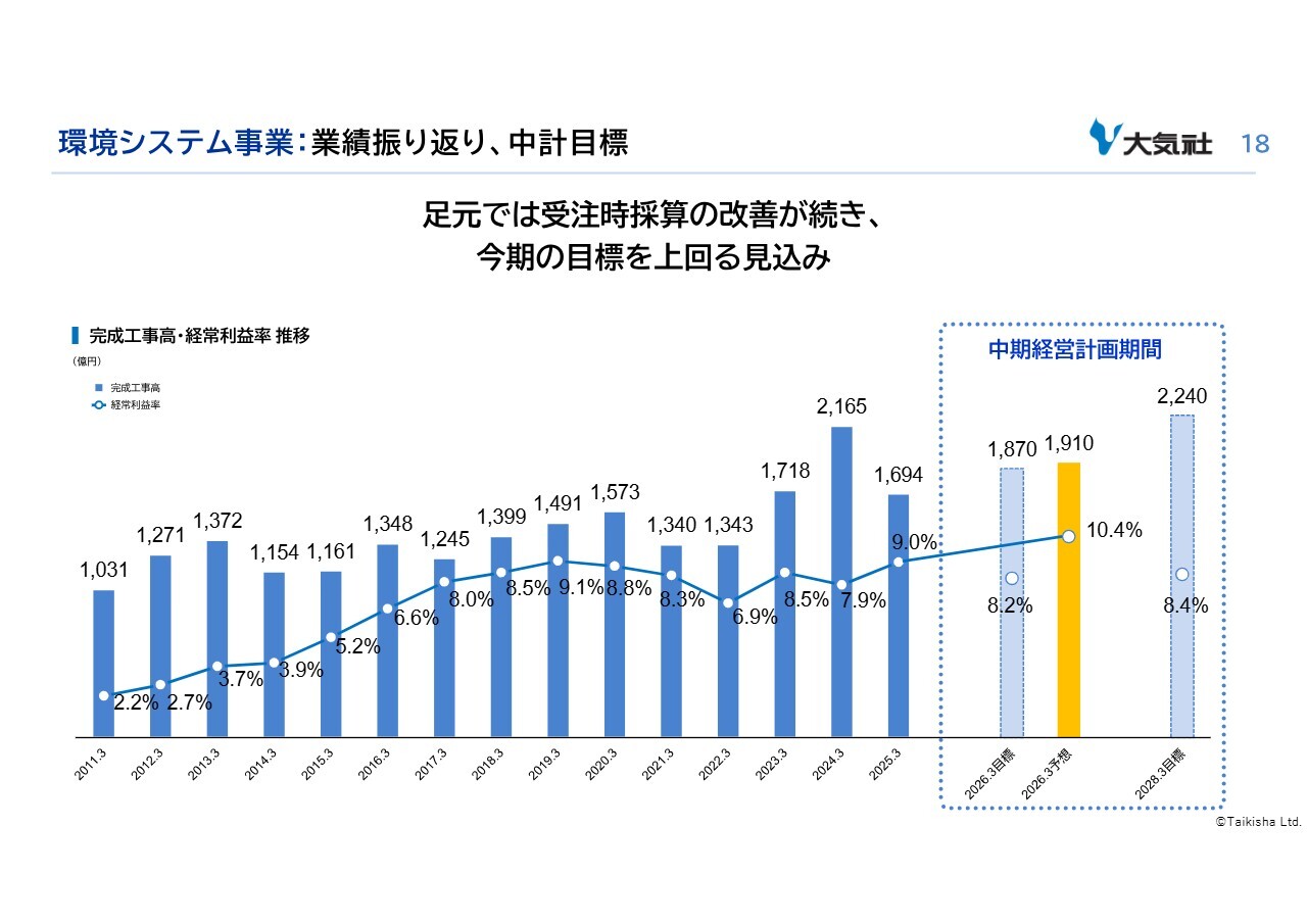なお、今回お示ししている成長イメージは、完成工事高の拡大だけを目的としたものではありません。事業ポートフォリオの転換を通じて、付加価値の高い領域へのシフトを進め、収益性と資本効率の向上を同時に実現することを意識しています。