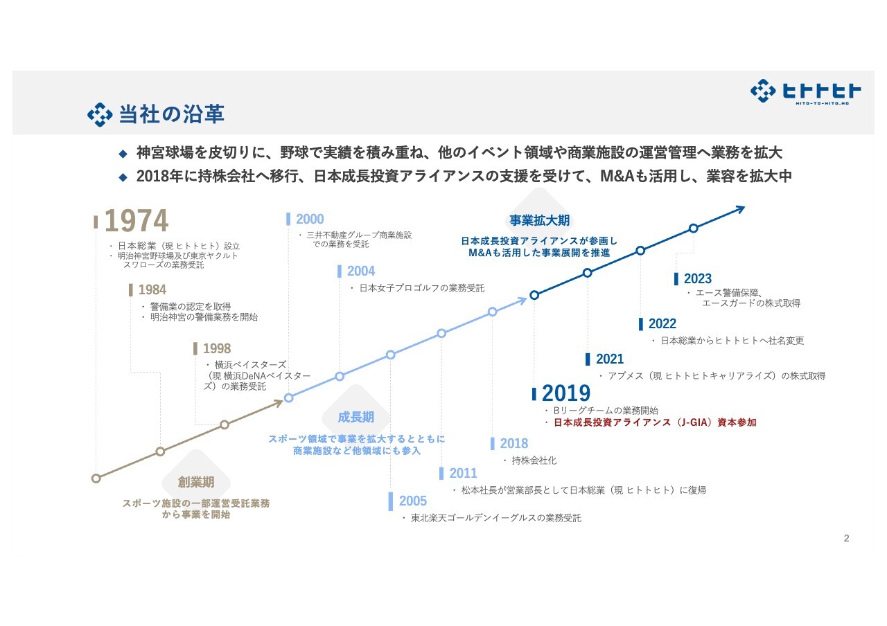 2019年に新たなスポンサーを迎え入れて以降、新しい資本政策のもとで事業拡大期と位置づけ、現在は創業52年目を迎えています。