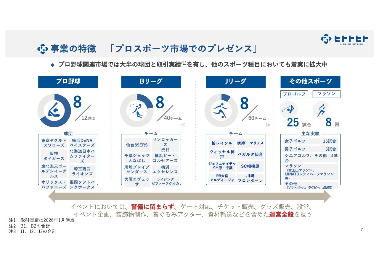 事業の特徴「プロスポーツ市場でのプレゼンス」