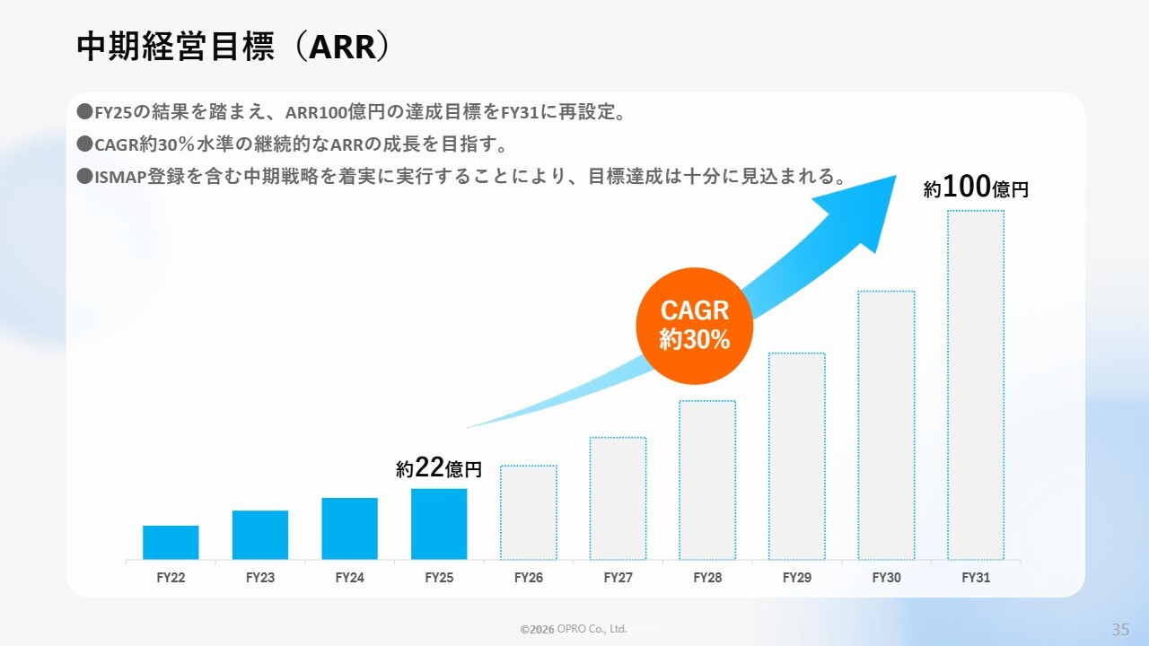 「ARRは現在約22億円ですが、FY2031の約100億円の計画には年35パーセントの成長が必要です。足元のARR成長率が低下していますが、どのタイミングで再加速する予定でしょうか? 具体的にARR成長率はいつ頃から30パーセント以上に戻る想定なのでしょうか?」というご質問です。