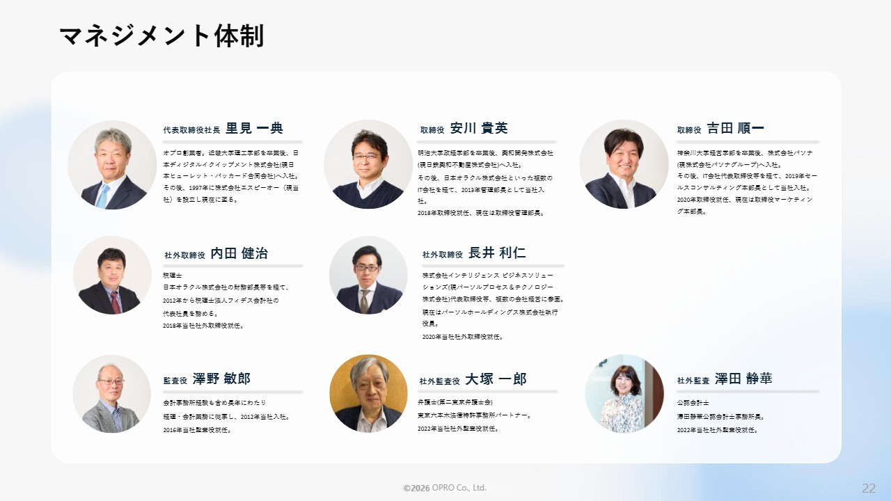 お時間となりました。本日はご参加いただき、誠にありがとうございました。これからもオプロをよろしくお願い申し上げます。