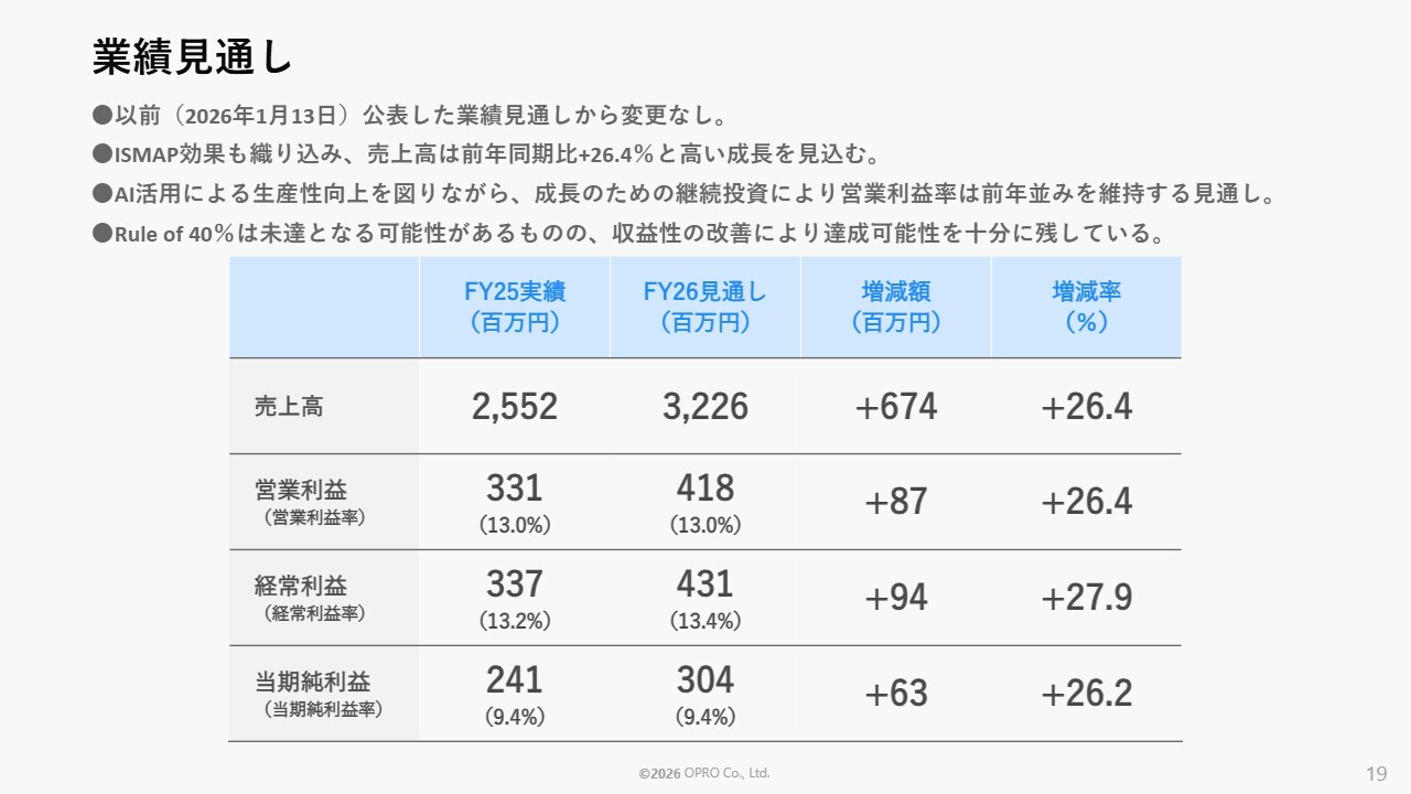 ISMAPの登録は昨年12月に行われました。そのため、この効果が現れるのはFY2026の下期あたりからになると考えています。