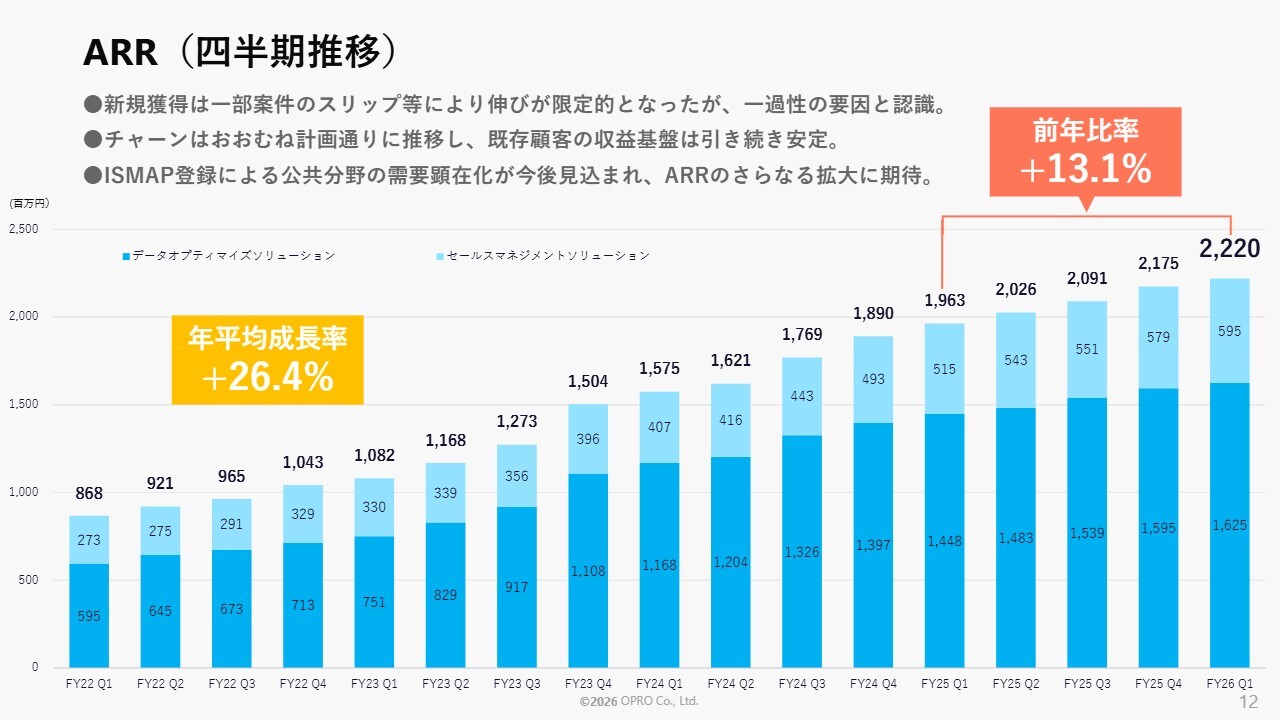 ARRは、対前年同期比で13.1パーセント増、年平均成長率は26.4パーセント上昇となりました。この結果は当社として決して満足のいくものではありません。第2四半期と第3四半期、後半に向けてしっかりと取り返していきたいと考えています。