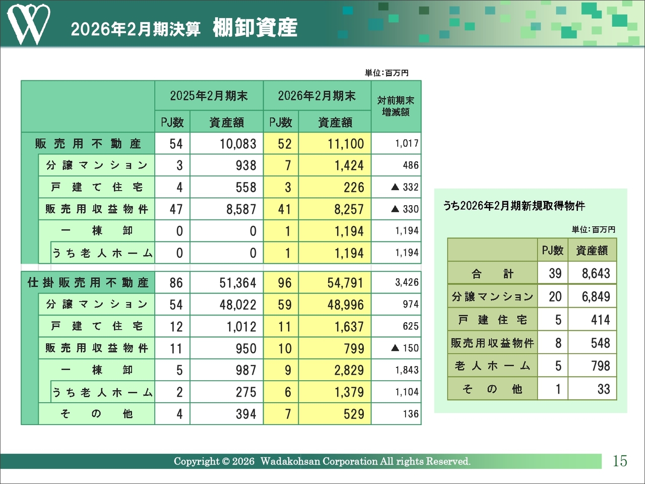 また、木造や鉄骨アパートなどの販売用収益物件の引き渡しは、前期と同様に15プロジェクトありましたが、単価の低い木造物件が含まれていたため、売上高が低下しました。
