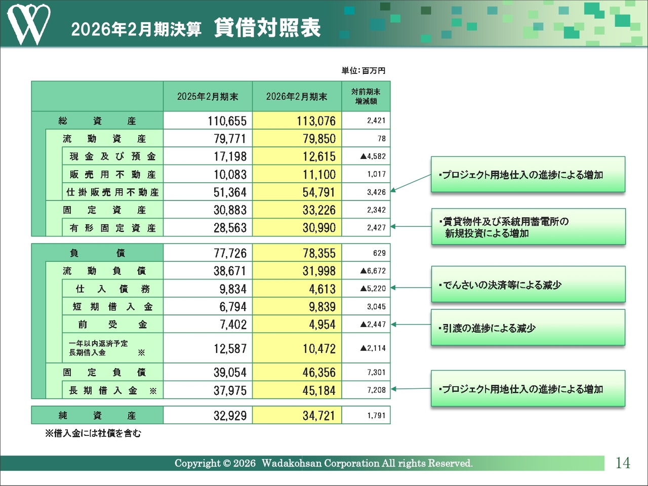 2026年2月期決算 貸借対照表