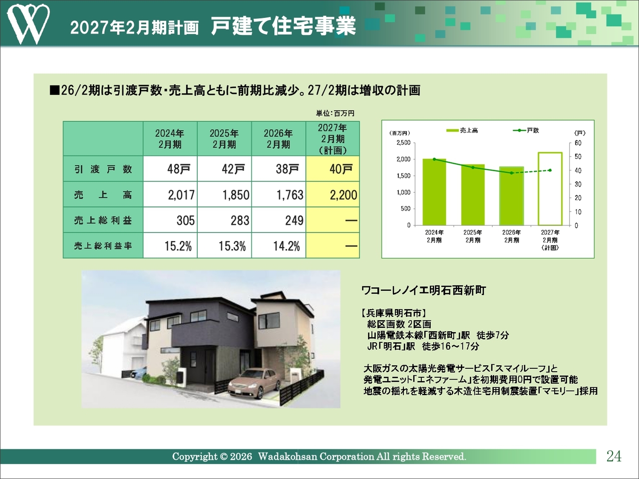 2027年2月期計画 戸建て住宅事業