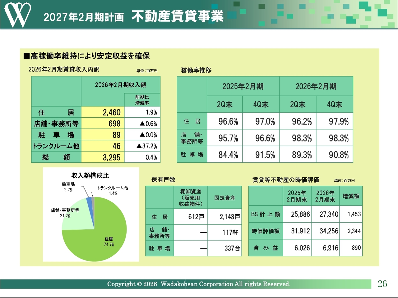 2027年2月期計画 不動産賃貸事業