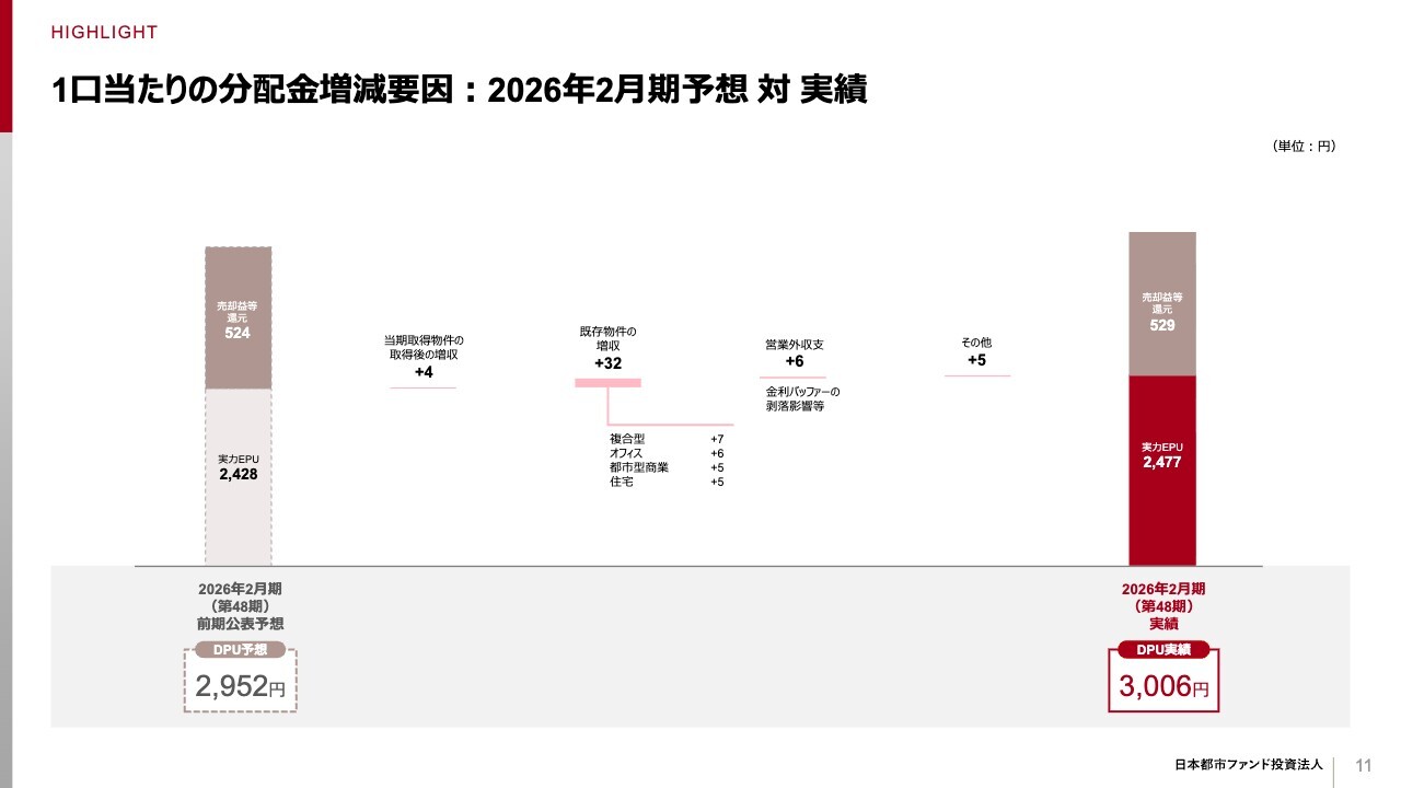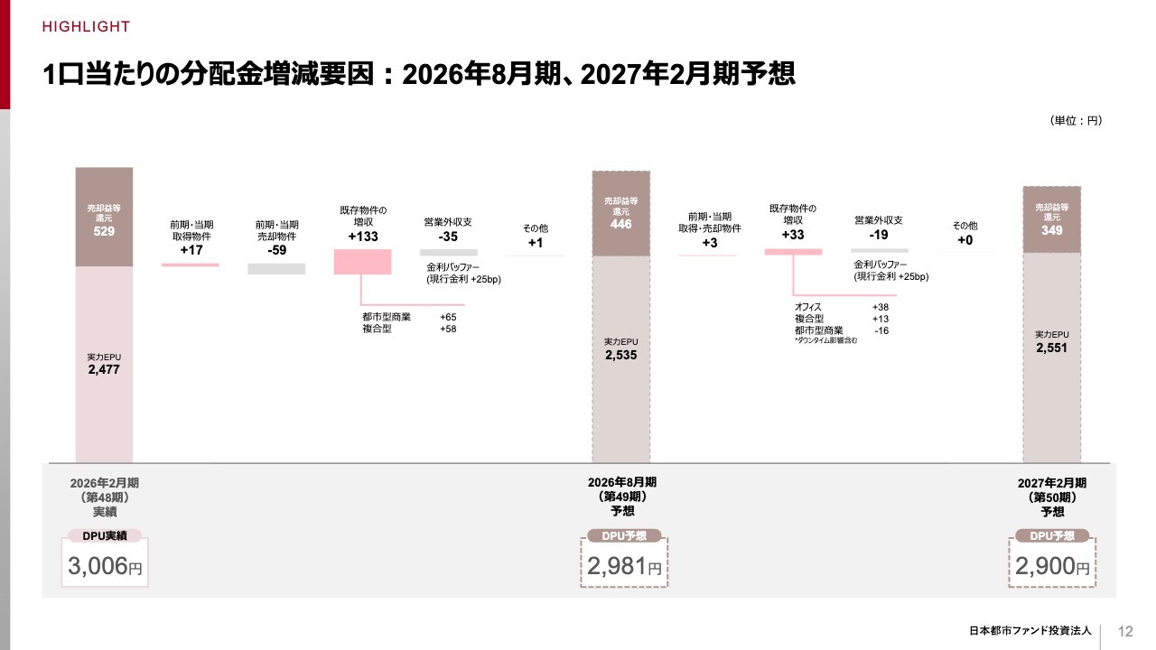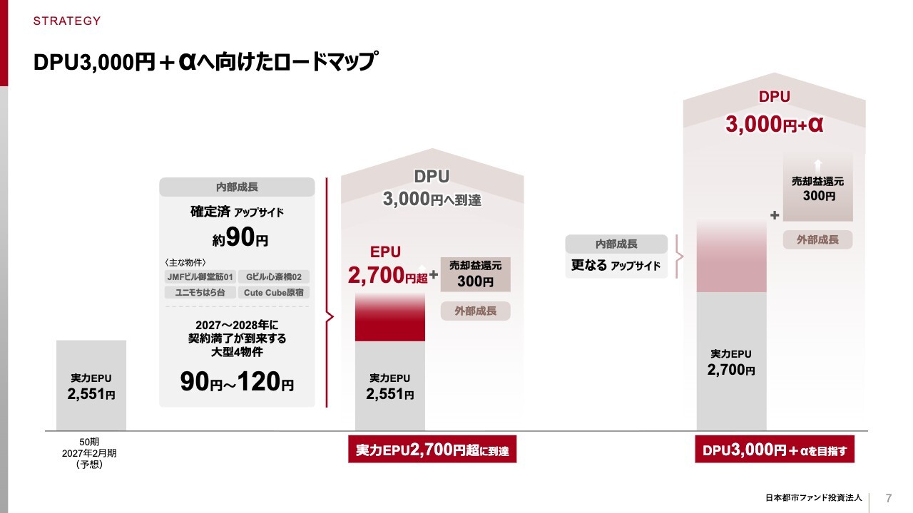 これらのアップサイドを着実に取り込むことに加え、外部成長によるさらなる実力EPUの向上と売却益還元を継続することで、DPU3,000円超の実現を十分に狙える局面にあると認識しています。