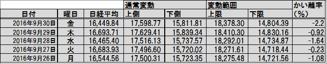 日経平均株価、9/30大引け時点の理論株価は1万6819円に