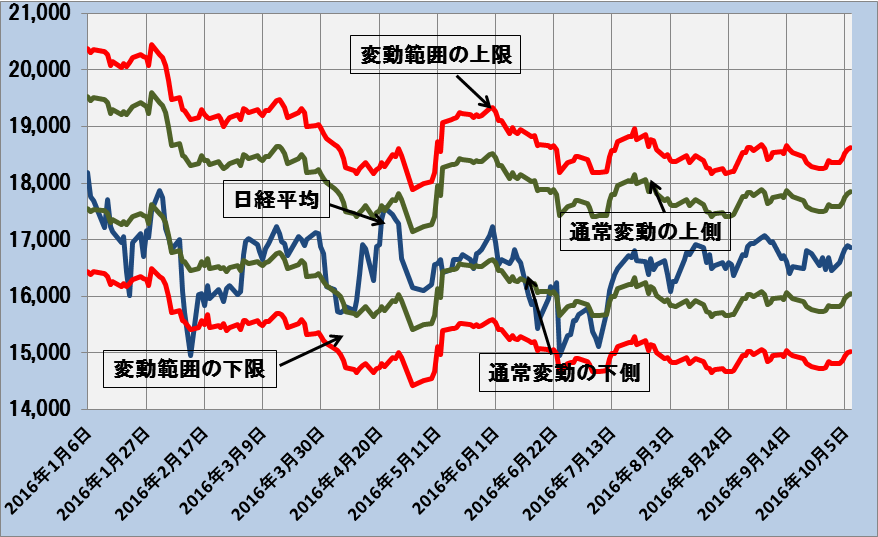 日経平均と変動範囲の上限・下限─拡大グラフ