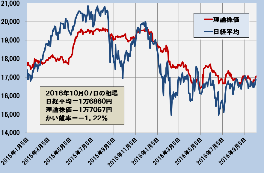 日経平均株価、10/7大引け時点の理論株価は1万7067円に
