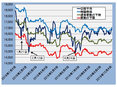 2016年の株式相場は年初から波乱模様となりましたが、夏場から落ち着きを見せています。今回はこの傾向を理論株価と対比することで、より明確に数値的に見てみましょう。
