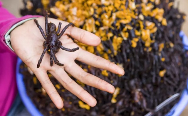 カンボジア料理である。見た目がアレだが、スパイスに十分漬けてから油でじっくり揚げるので、サクサクしておいしいのだとか。