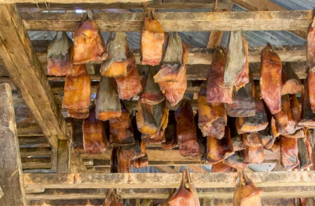 見た目がサーモンのようだが、実はサメ。アイスランドの料理、ハカールはサメの燻製なのである。ニオイに強烈さで世界的に有名。味も、他の国のシェフに言わせれば「気持ち悪くなる味」なのだとか。
