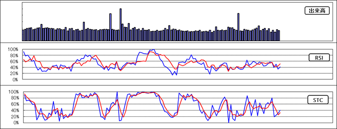 高値圏での保ち合いとなっています。RSIは高値圏にあり、ストキャスティックスは高値圏からの調整となっているので上値は重そうですが、値持ちのいい展開で保ち合いが続きそうです。