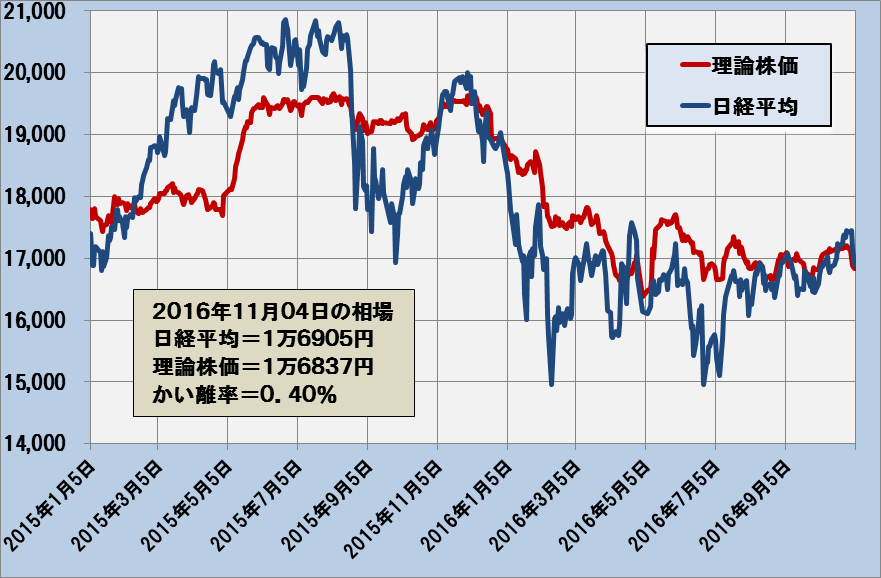 日経平均株価、11/4大引け時点の理論株価は1万6837円に