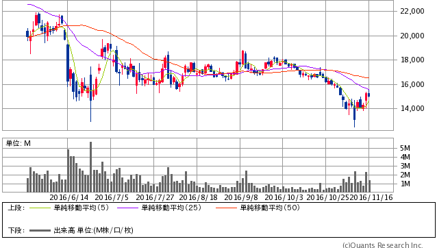 11月16日、都合良く上がる日経平均は反発。前日のNYは製造業景況指数や小売り売上といった出てきた経済指標が軒並み良かったこと、また原油価格がサウジとロシア高官の会談により減産期待感が高まったことで強含んだことから、エネルギー関連株に買いが入りました。ダウは終値ベースで最高値を更新。