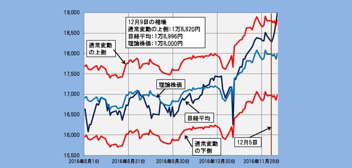 日経平均株価、12/9大引け時点の理論株価は1万8000円ジャスト