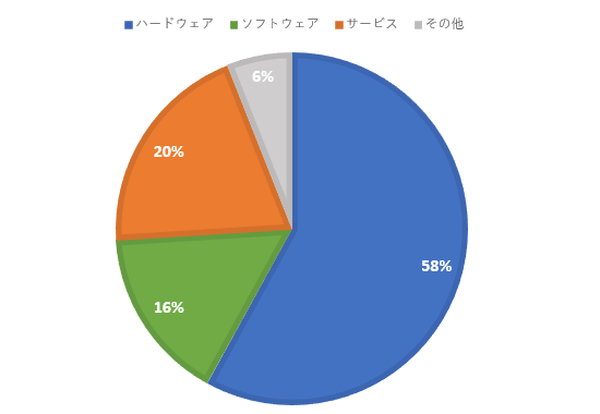 そして、2016年の事業構成を確認すると、ハードウェア事業はわずか10%まで下がっています。