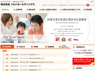 北海道を起点に東北・関東を中心に大手ドラッグストアを経営するツルハホールディングス。1377店舗(2015年4月15日現在)を超え、どんどん店舗を拡大しています。