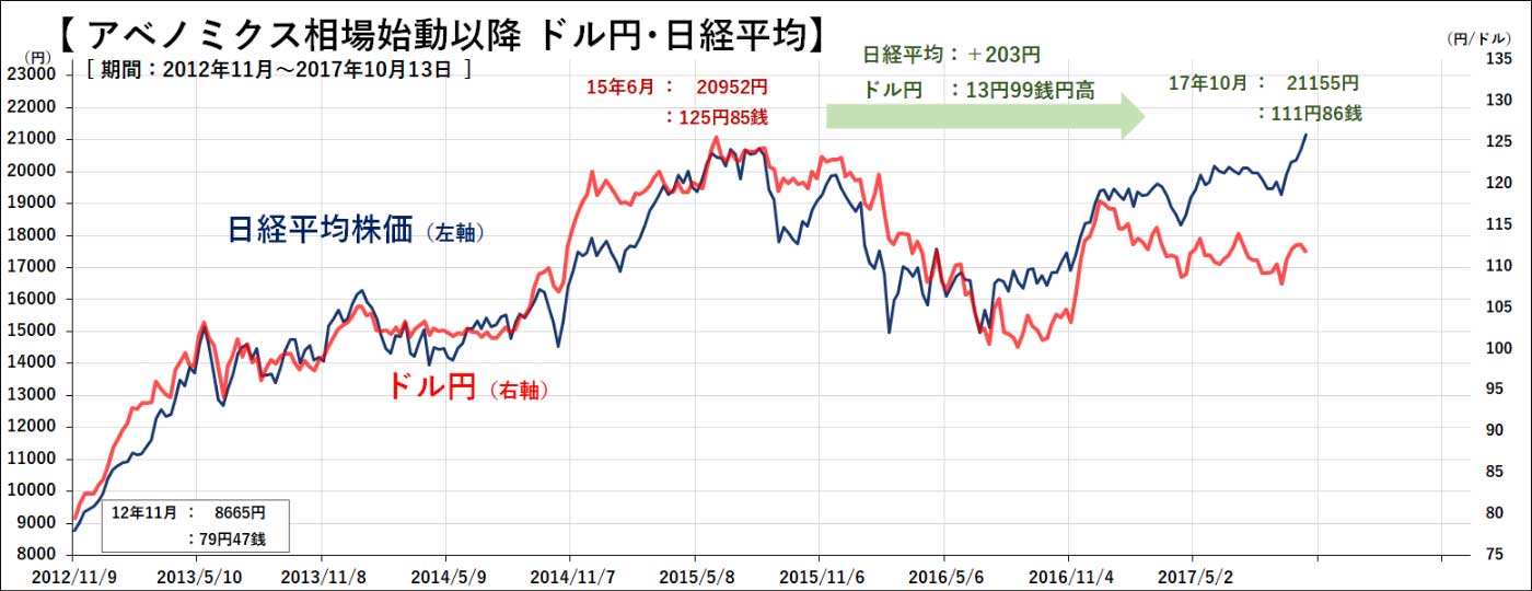 【図4】アベノミクス相場始動以降、ドル円・日経平均の推移