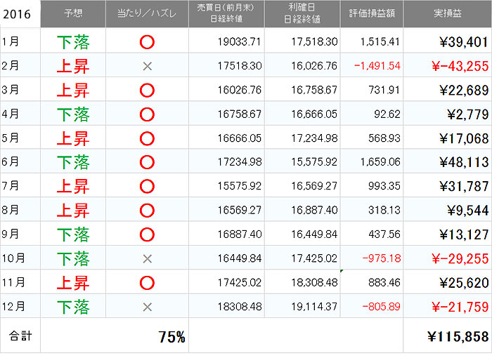 <2016年のシミュレーションと実績>