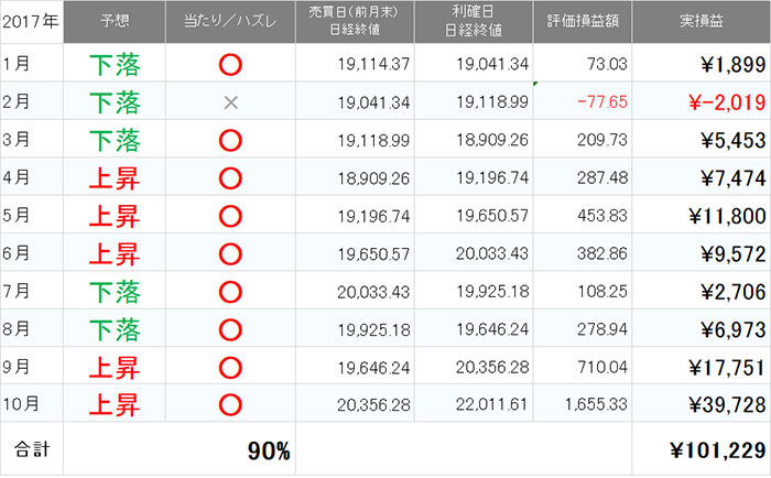 ※日経平均連動型ETF投資信託を売買した、損益シミュレーションになります。