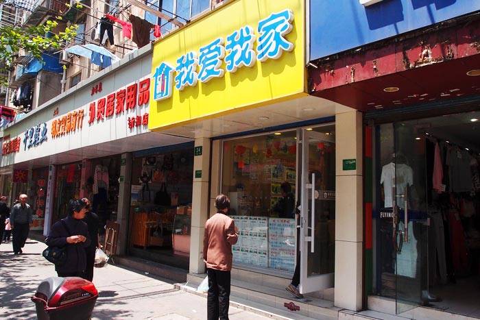上海市虹口区周辺は、銀行やスーパー等の生活施設が一通り揃っており、地下鉄の駅や路線バスの停留場も近く、学生客が多く見込めるエリア。そのため各社こぞって出店するのですが、今回の訪問でも、経営不振から店じまいをしている不動産業者を見かけました。