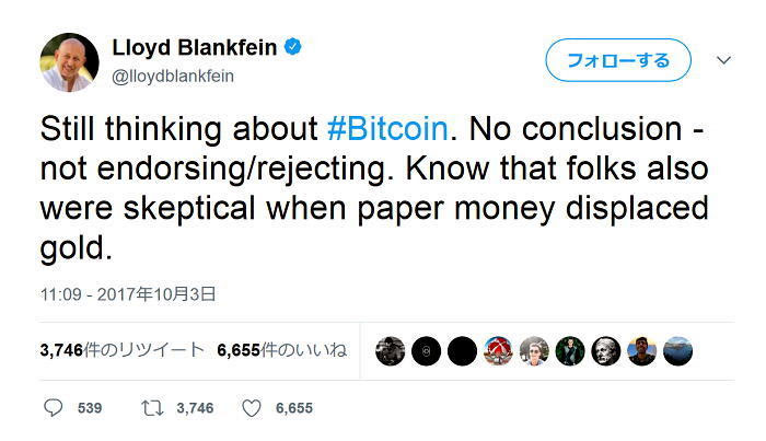 そして、なぜ、このタイミングで、ゴールドマン・サックスのロイ・ブランクファイン最高経営責任者(CEO)が、ビットコインについての意味深なツイートを投じたのでしょう。