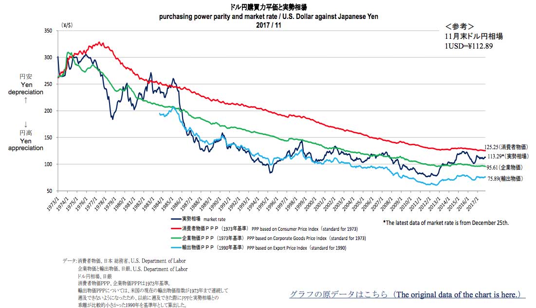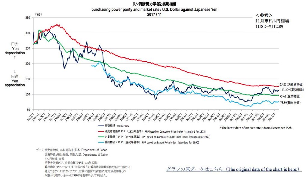 まず購買力平価では、今現在のドル円は、下記の図を見てもわかるとおり、