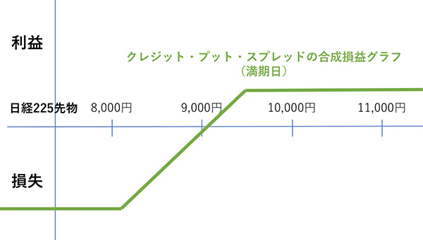 備えある投資家ならば、相場急変にも耐えられるように、「9,000円のプットは売るけど、急落に備えて(9,000円プットよりプレミアムが安い)8,000円プットは保険として買っておく」ポジションを持つものなのです。