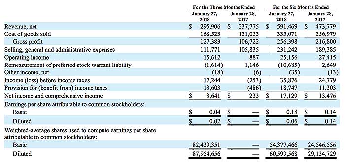 直近の四半期を見てみると、売上が$296M(約296億円)、粗利益が$127M(約127億円)、営業利益が$16M(約16億円)となっています。