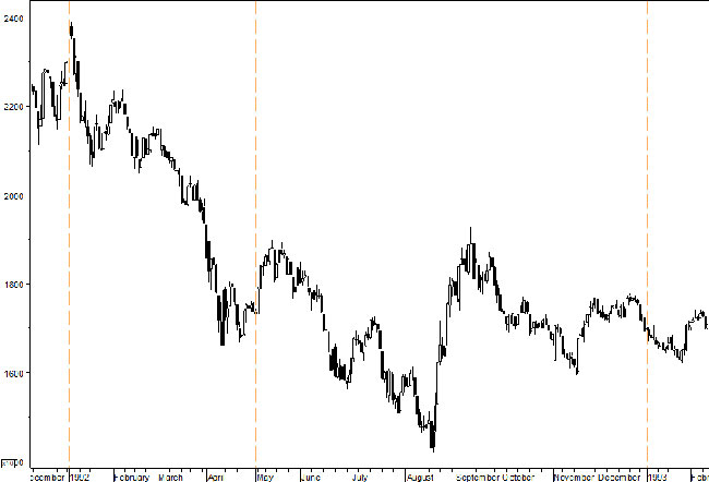 年明け後の価格が2月まで下げ続ける場合、特別に弱い状況のため、その年のうちに経済対策が決定します。そのため、その年のうちに底値をつけて、翌年まで続く上昇の流れへ入るというパターンがあります。