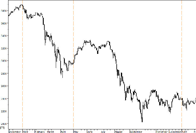 本年の値動きも該当するが、年明け後すぐに下降を開始する年には共通点がある。年初の高値に戻す場面があっても、2万3000円以上を目指す展開にはならないだろう。(『少額投資家のための売買戦略』伊藤智洋)