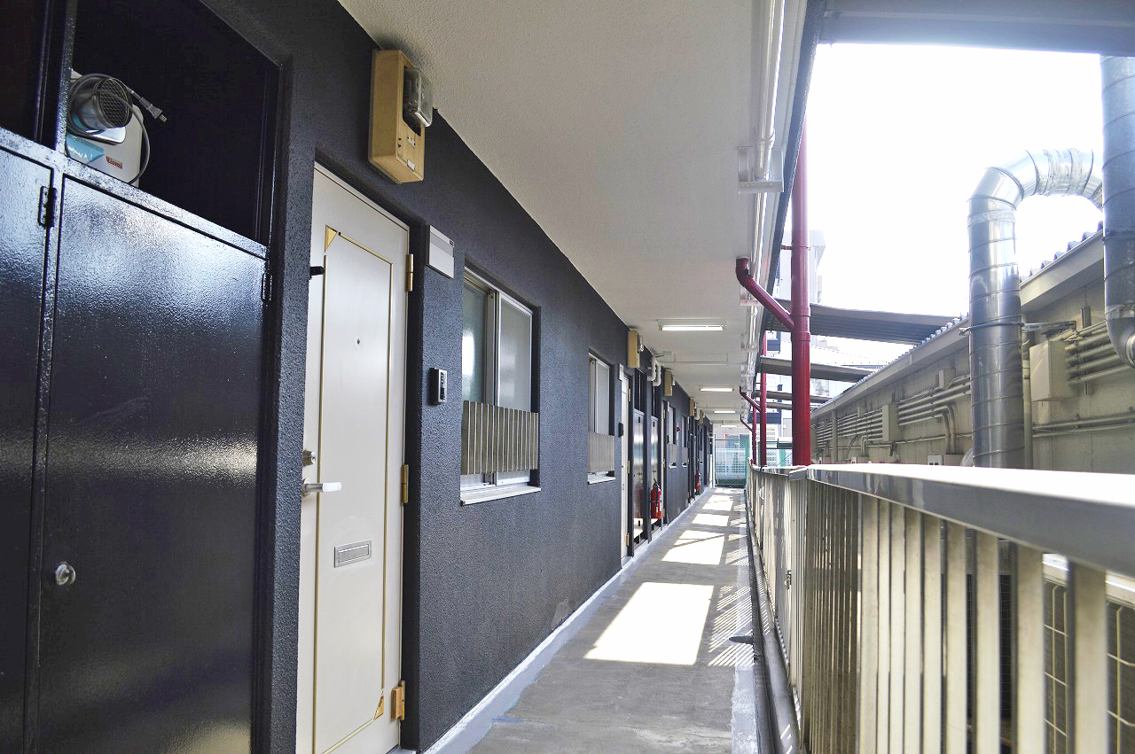 ※Before/Afterが動作しない方はコチラ続いては共用部分のビフォー&アフター。最初に目がいくのは壁の色だが、細部まで見ていくと、崩れかかっていた壁の補修、錆が浮いていたパイプ類の塗りなおし、天井部分の色変更と随所に変化が確認できる。