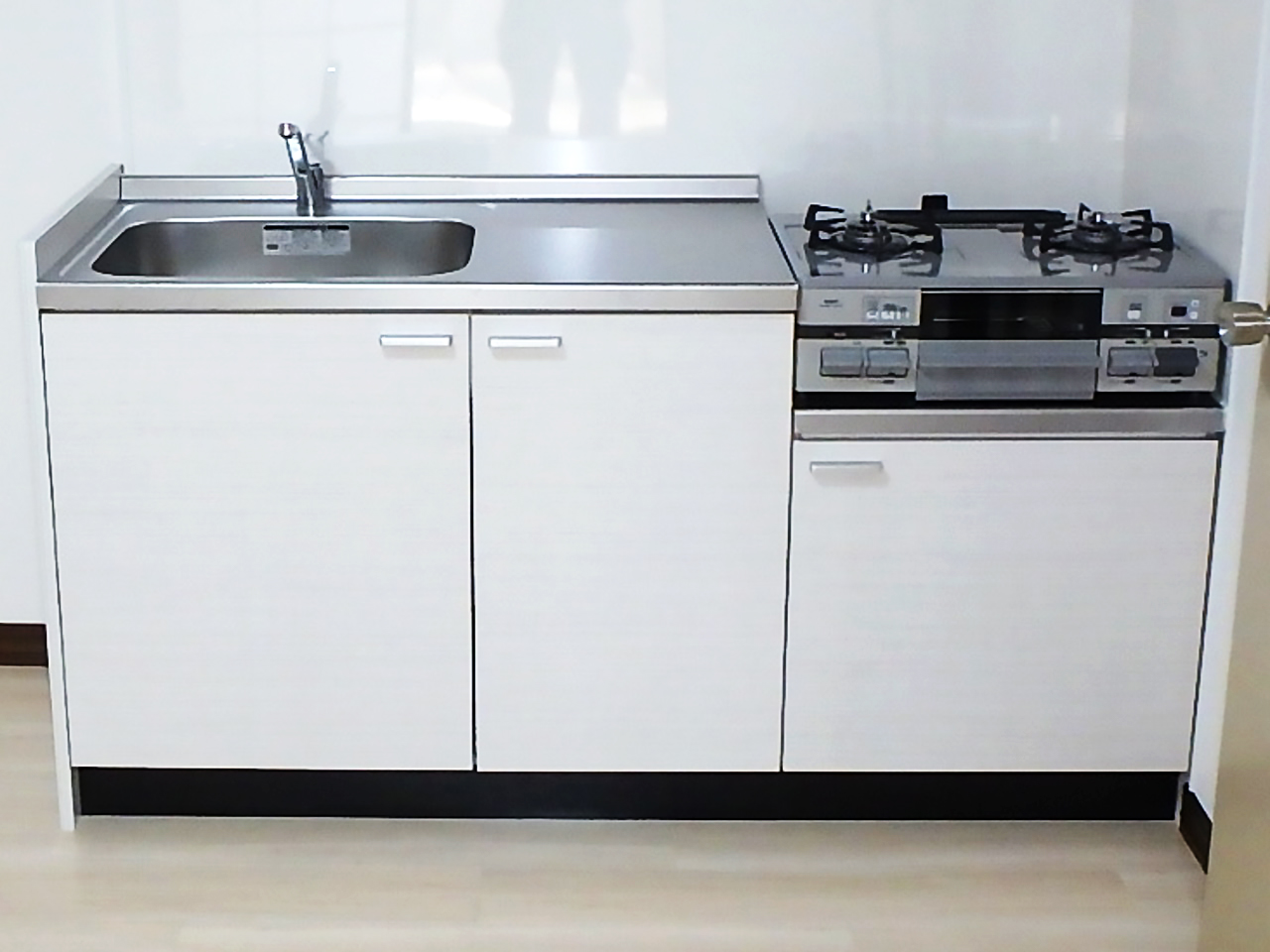※Before/Afterが動作しない方はコチラ続いて見るのはキッチンのビフォー・アフター。入居希望者の物件の印象を左右するのは意外と細部であることが多い。ビフォー物件では、手回し式の混合水栓だったが、アフター物件ではレバー式水栓に変更されている。