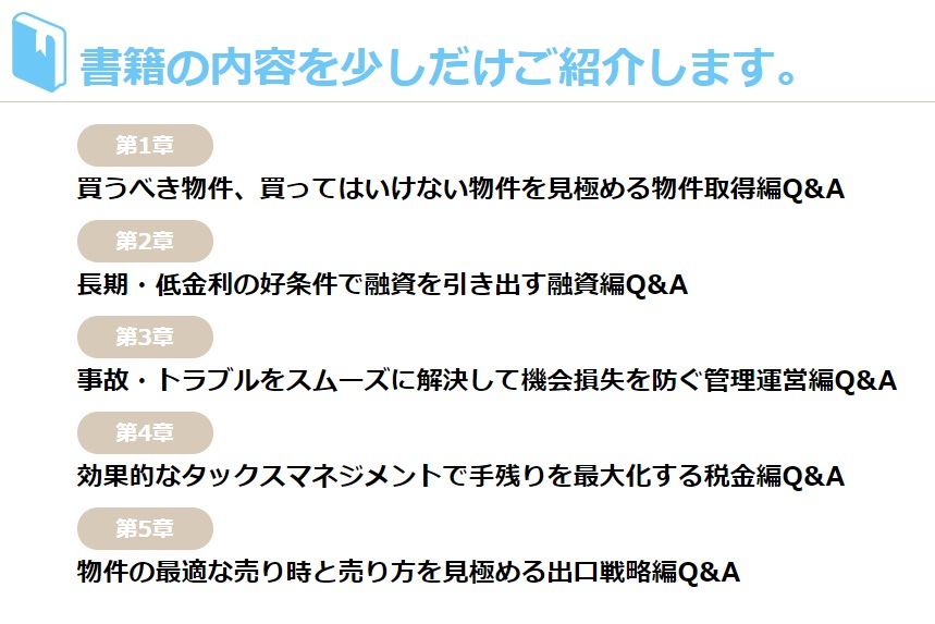 物件選び+融資+管理・運営+税金+出口戦略を全部学びたいあなたに